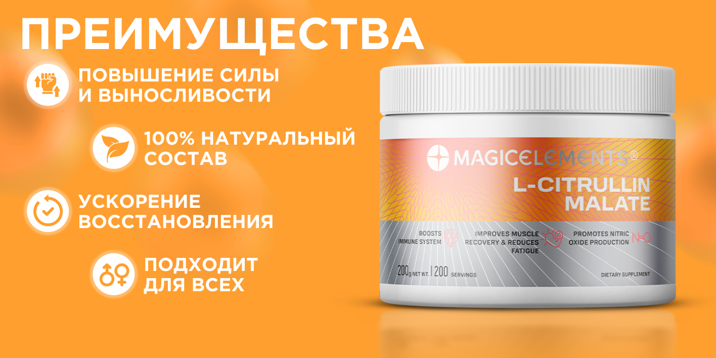 Основные преимущества L-Citrulline Malate от Magic Elements: