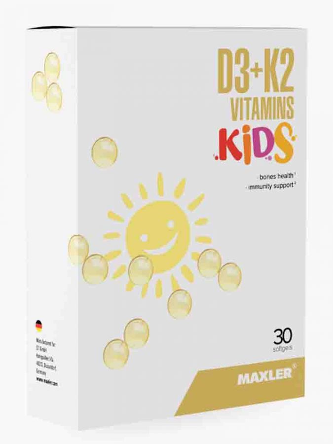 Эти два витамина необходимы для того, чтобы помочь организму усвоить другие важные минералы. Витамин D помогает усваивать фосфор и кальций. Витамин К помогает кальцию достигать костей, не накапливаясь в кровеносных сосудах. Maxler D3+K2 Vitamins Kids – это верный способ поддержать здоровье ваших детей и привить им полезные привычки.