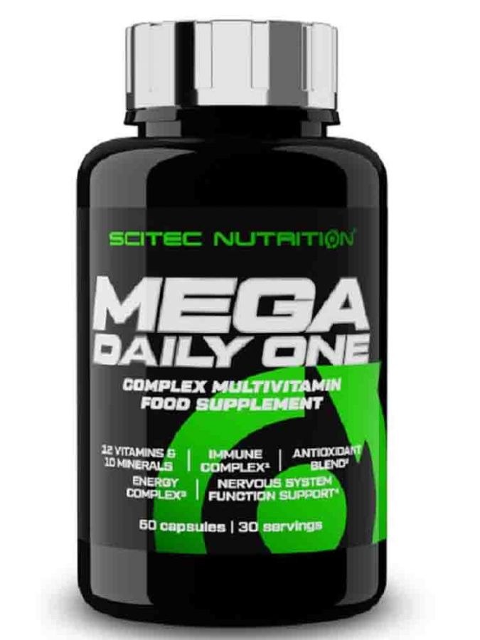 Scitec Nutrition Mega Daily One Plus имеет 250% Рекомендуемой дневной нормы Витамина D3! Витамин D способствует поддержанию нормального мышечного тонуса и функции иммунной системы, и для нормального поглощения и утилизации кальция и фосфора. Цинк способствует нормальной регенерации, воспроизводства и поддержания нормального уровня тестостерона, а также для нормального обмена веществ. Магний способствует нормальному функционированию нервной системы: синапсах и сокращение мышц, включая сердечную мышцу; также для нормального синтеза белка, а также поддержанию нормального состояния костей и зубов.